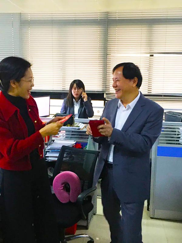 2024年2月19日,廣西翰林工程項目管理有限責(zé)任公司高層在董事長鄧德輝帶領(lǐng)下,給全體員工送上開年紅包和新年祝福,寓意著新的一年里,公司領(lǐng)導(dǎo)繼續(xù)與員工努力共創(chuàng)美好未來。